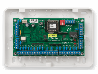 This 16-zone expansion card interfaces with the system’s BUS and includes 16 dry contact inputs as well as single open collector output and optional tamper switch protection.